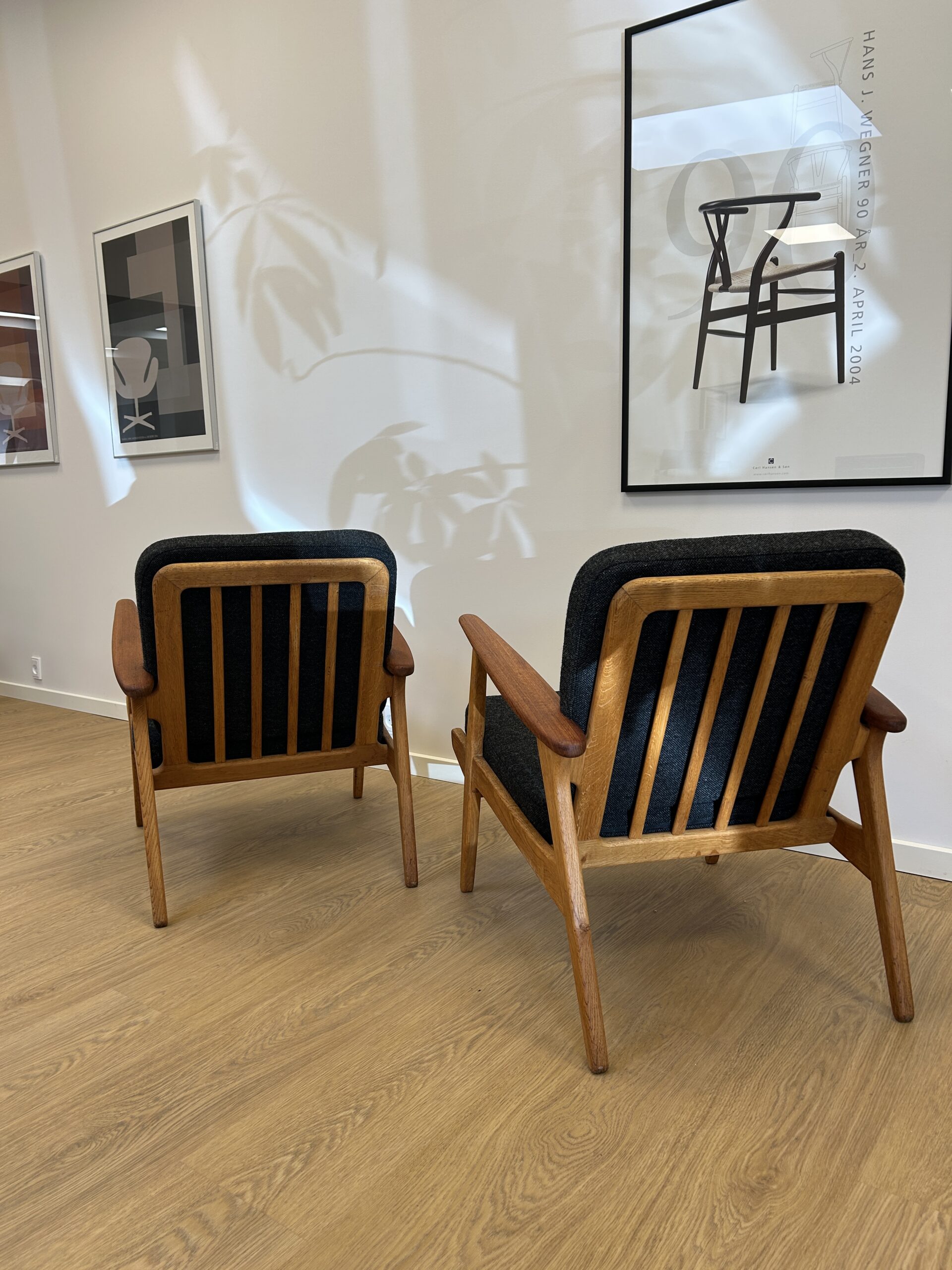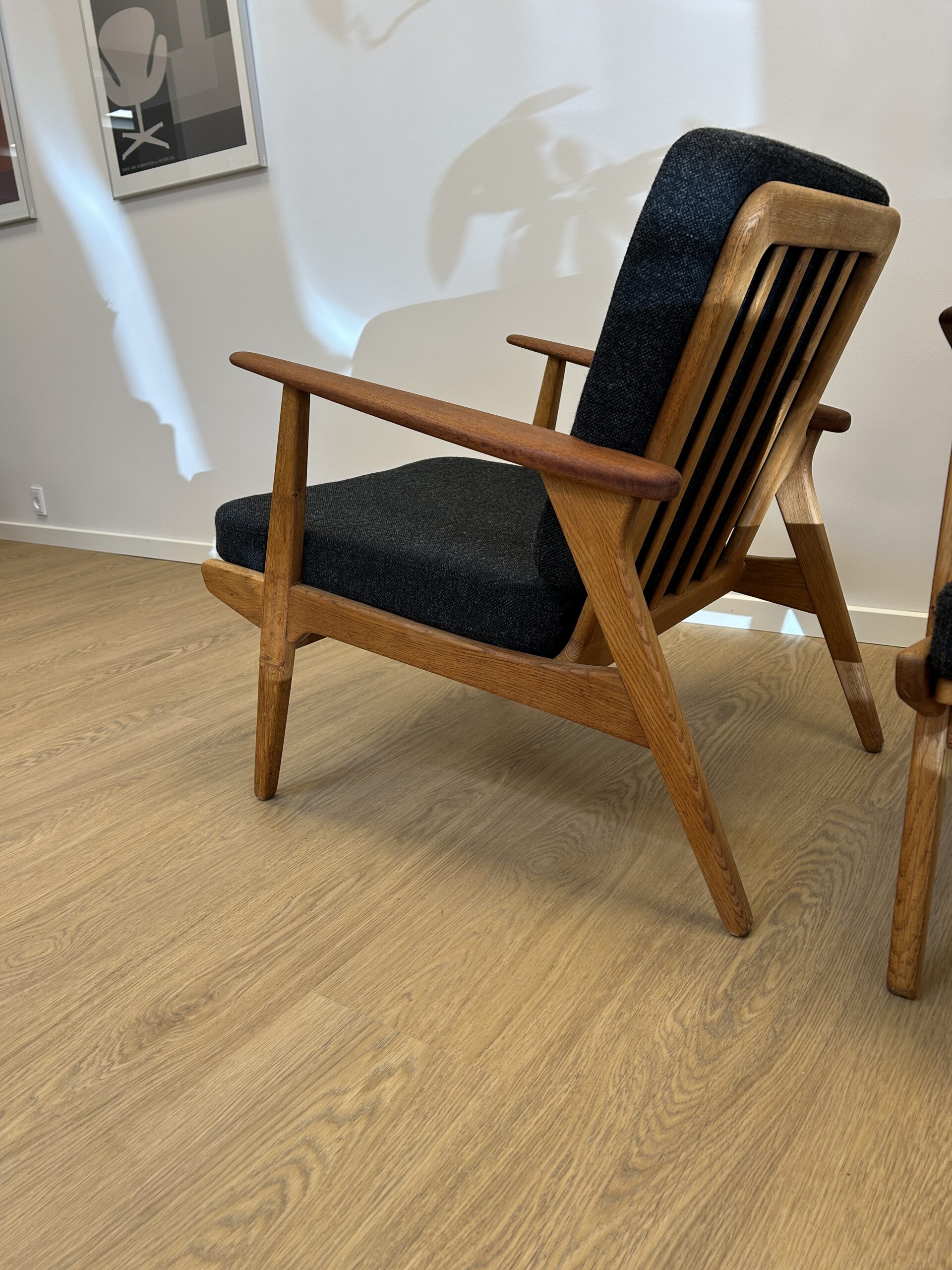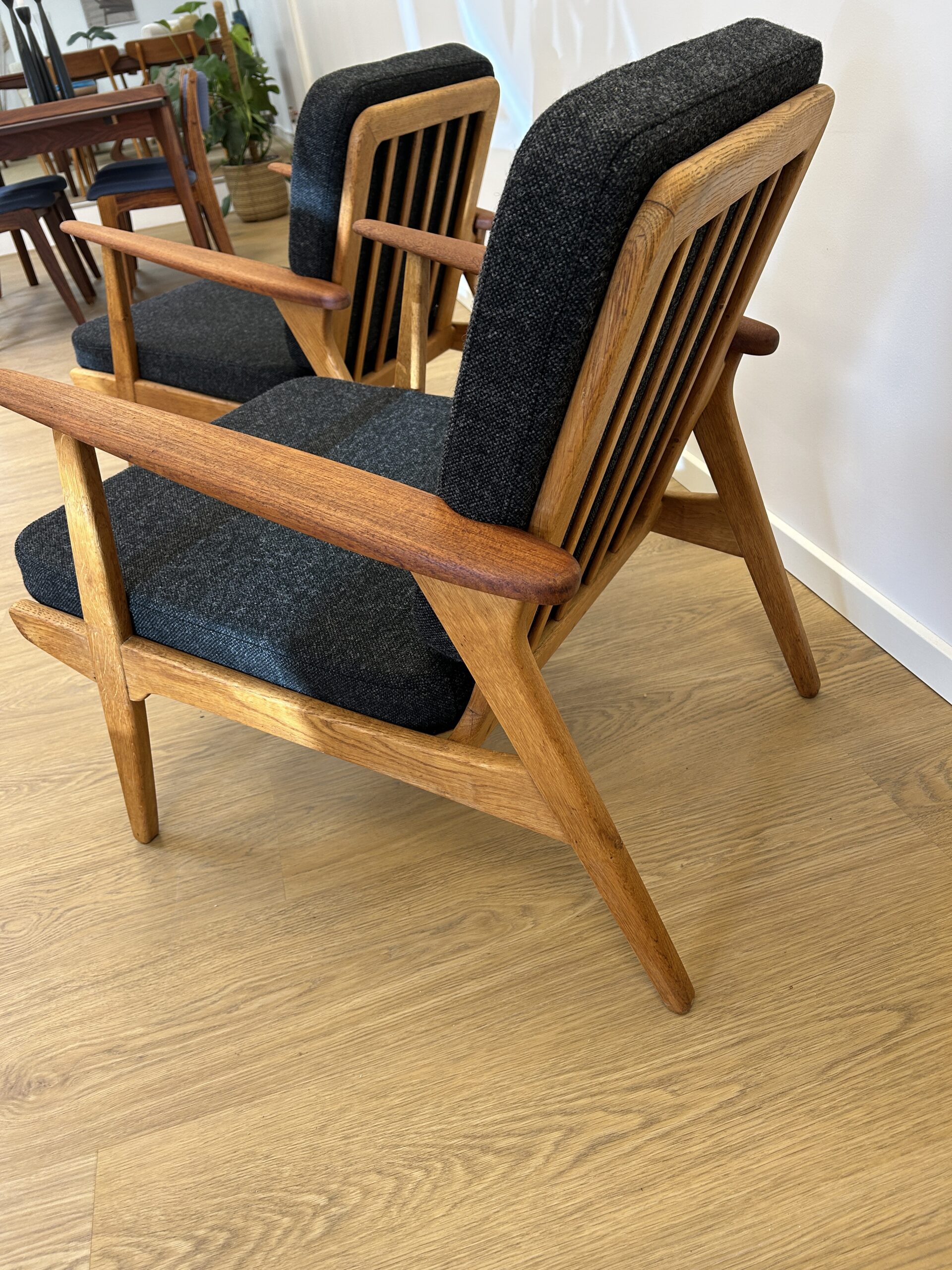 Disse to smukke loungestole forener klassisk dansk møbelhåndværk med tidløst design og komfort.