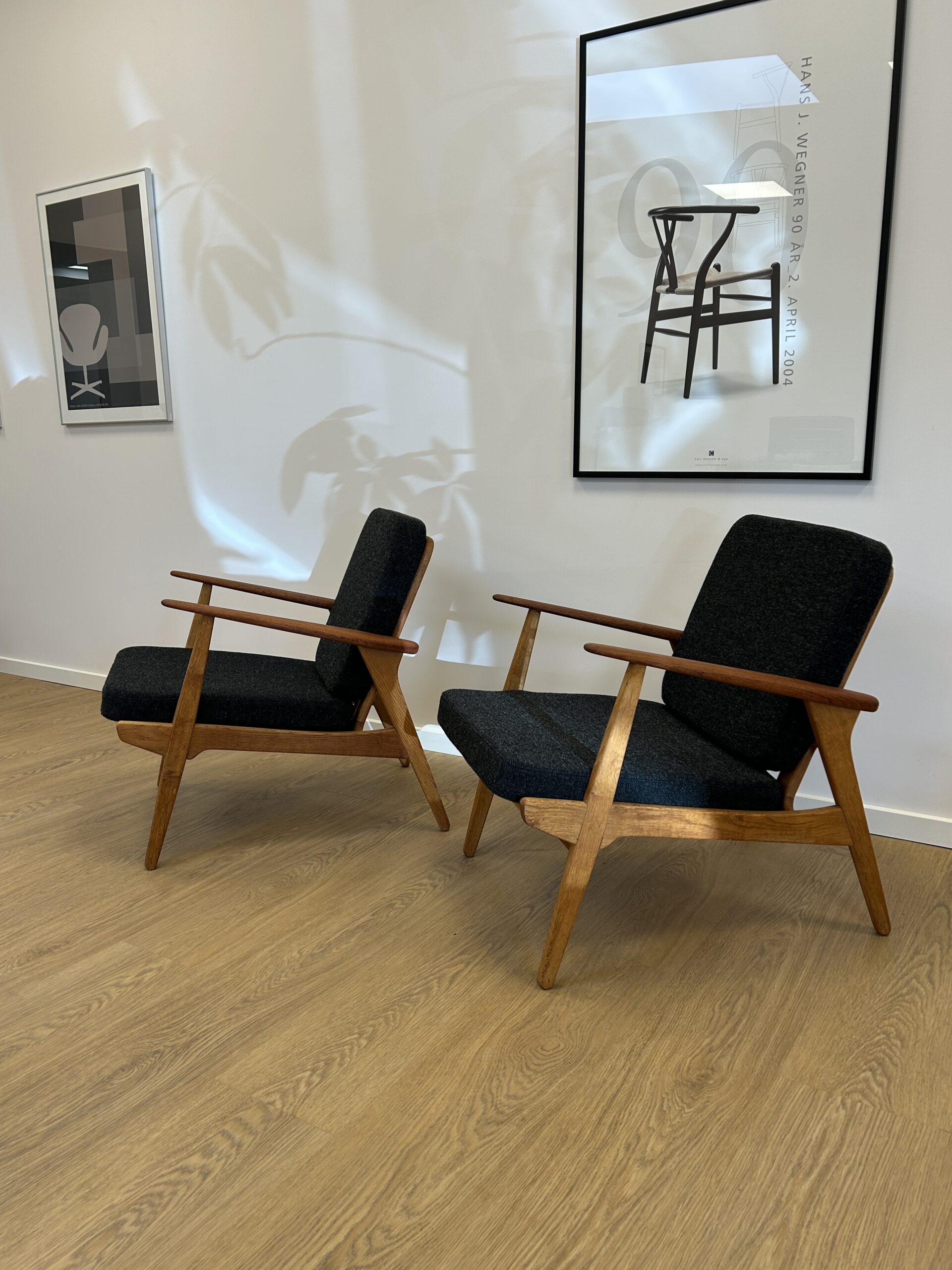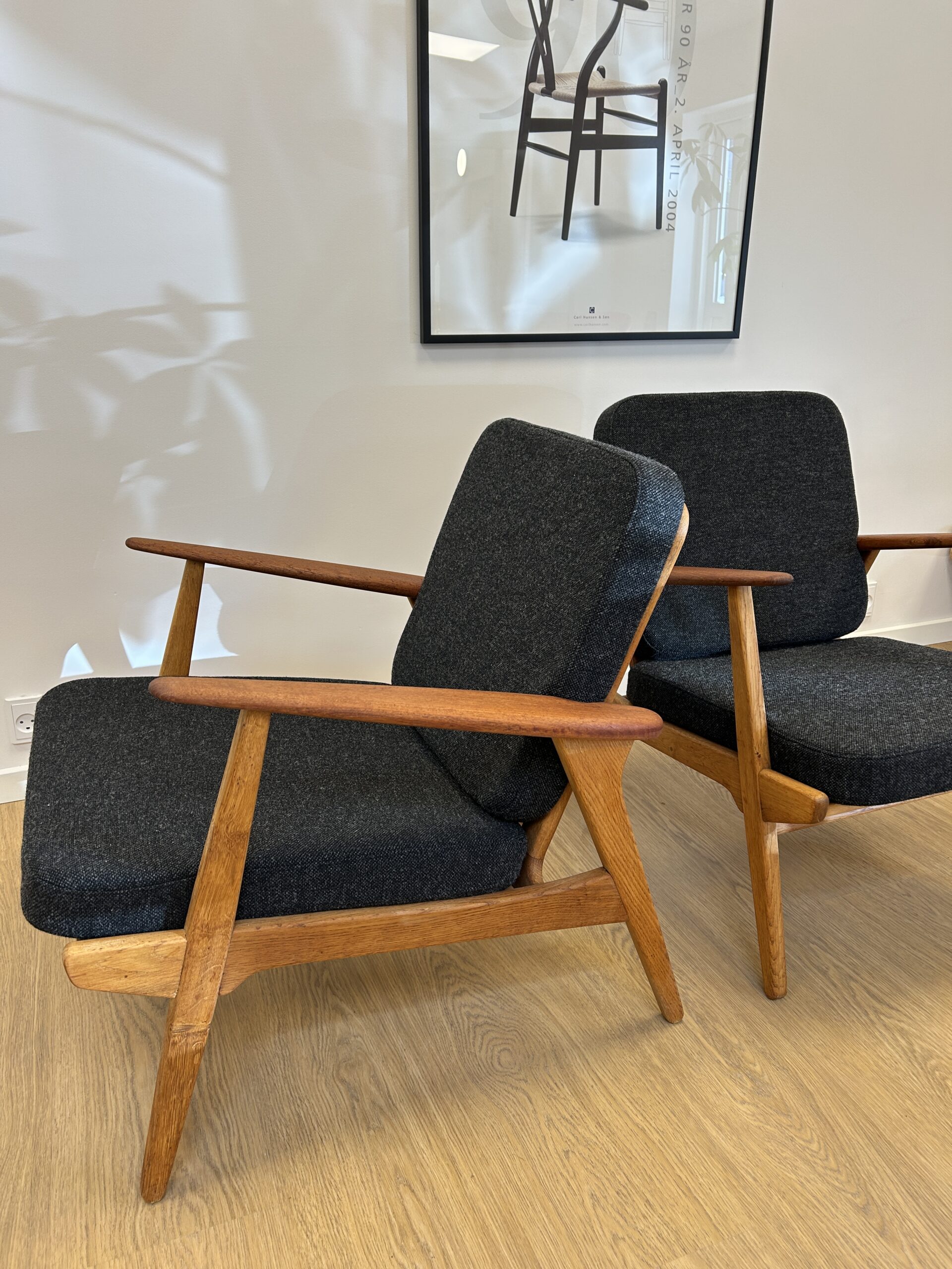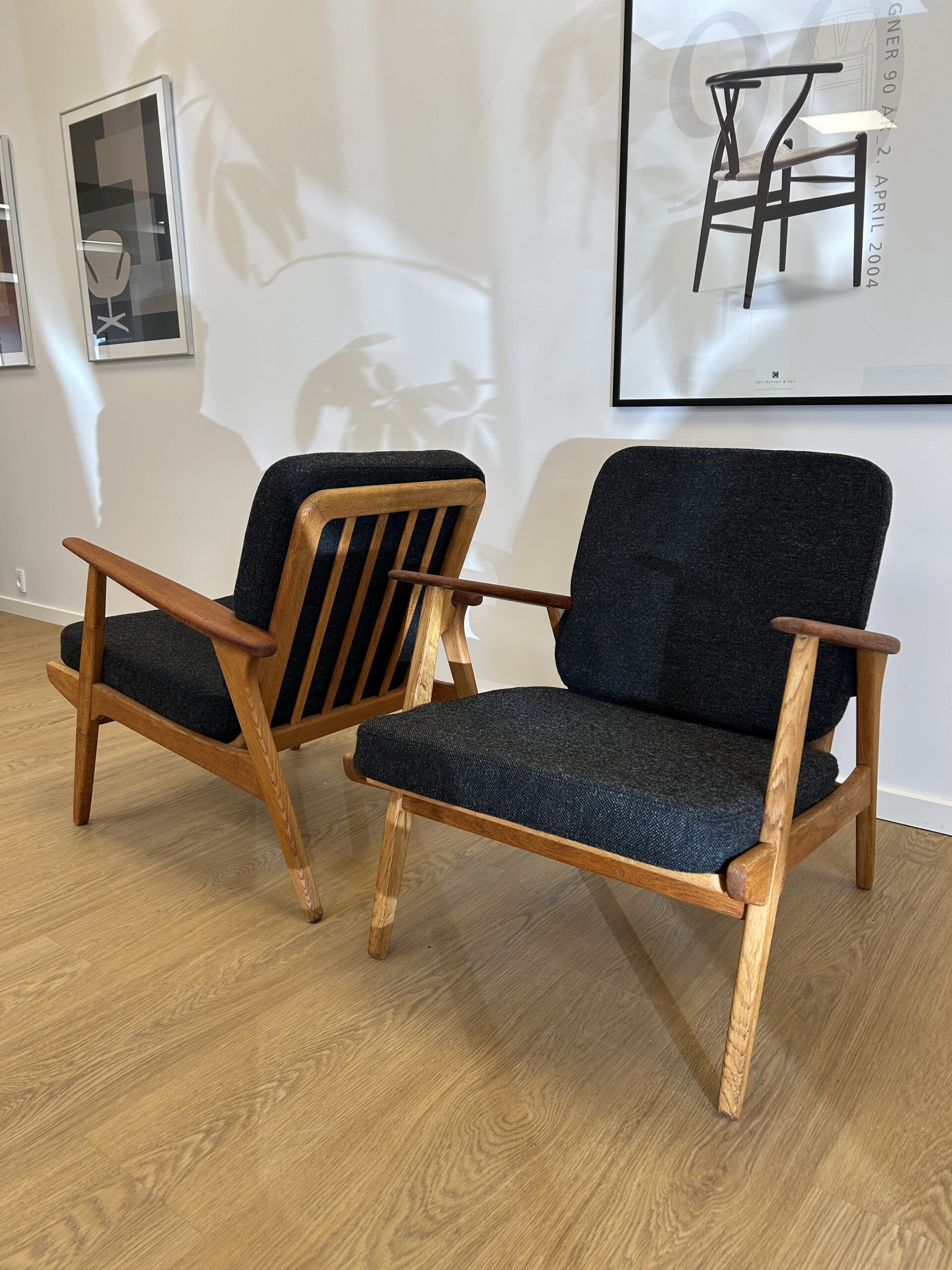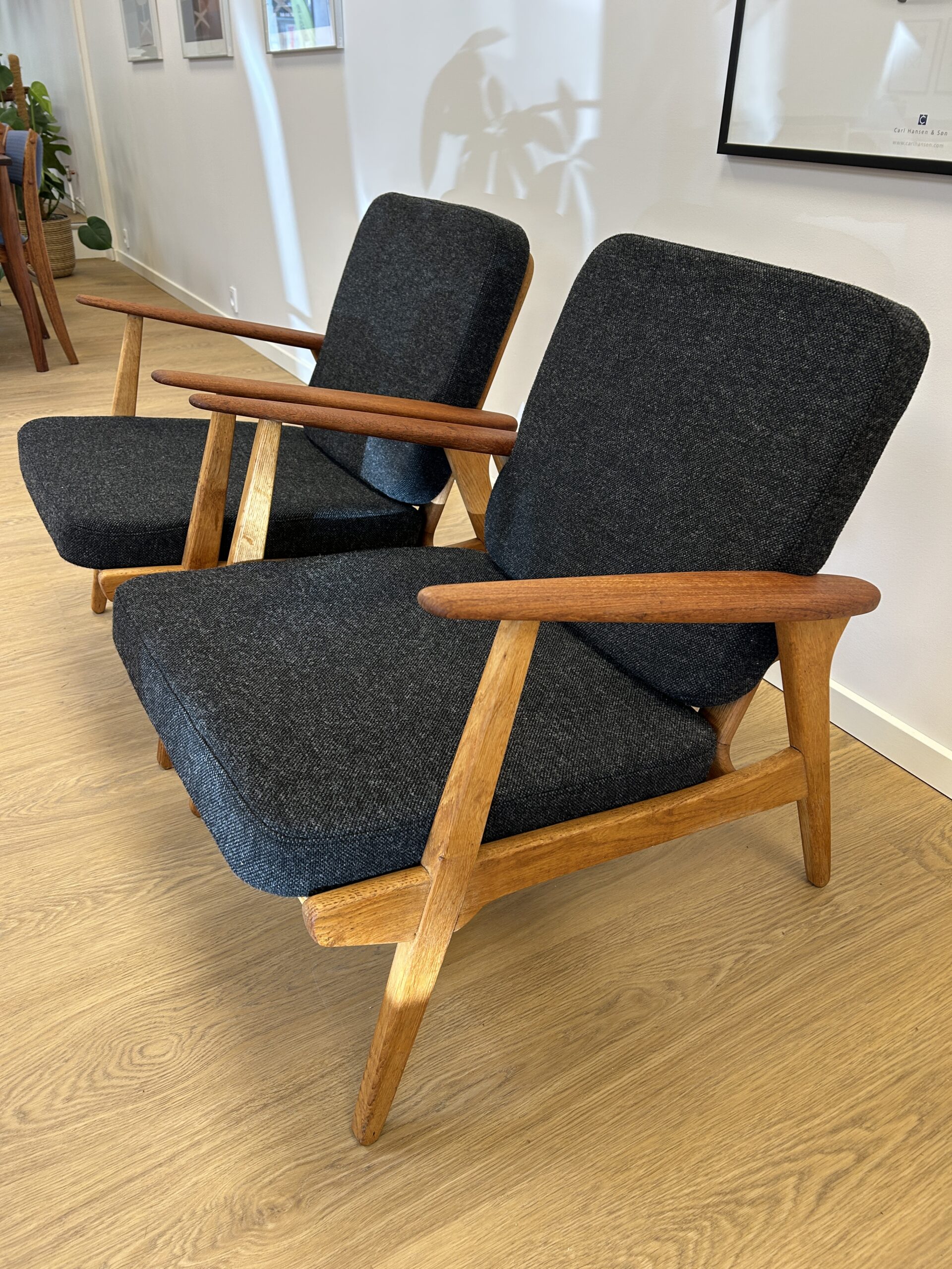 Disse to smukke loungestole forener klassisk dansk møbelhåndværk med tidløst design og komfort.
